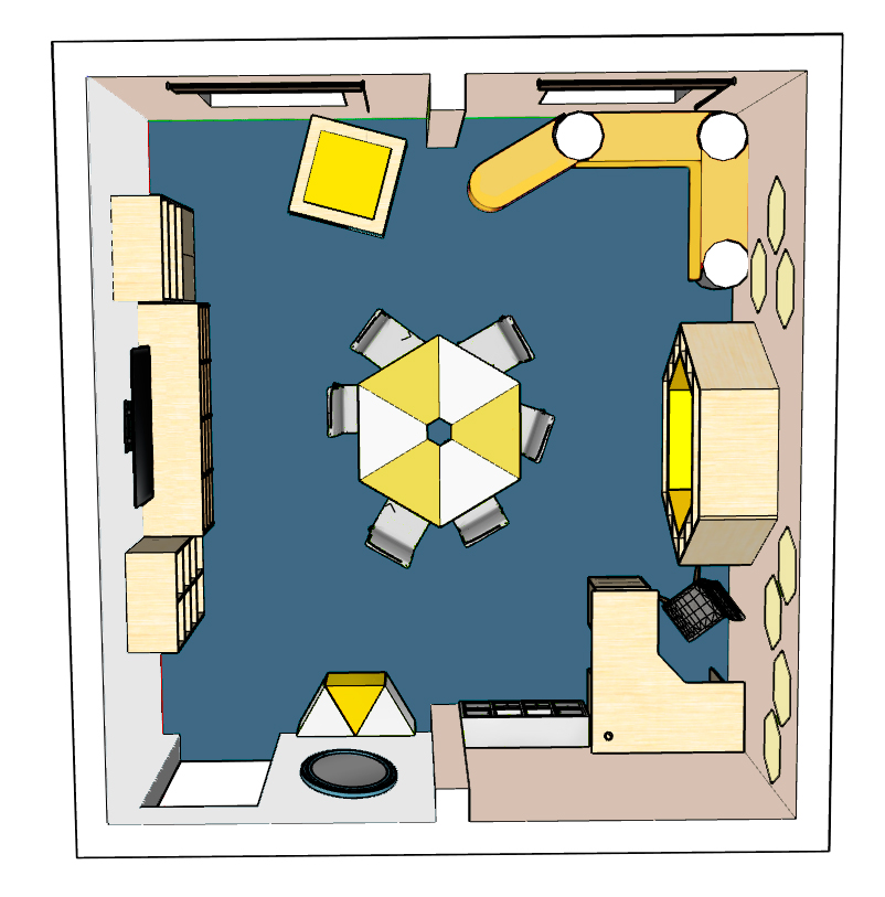 Мягкая банкетка с 6-ю гранями подойдет для разных габаритов помещений. Может стоять отдельно в коридоре школы, холле университета. Украсит сенсорную комнату, кабинет психолога или логопеда.
